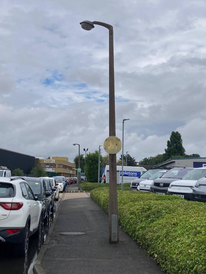 These two survivors are in Slough Berkshire. They are concrete columns with GEC Z8596s on them, and there are two of them. They both appear to have glass bowls.
