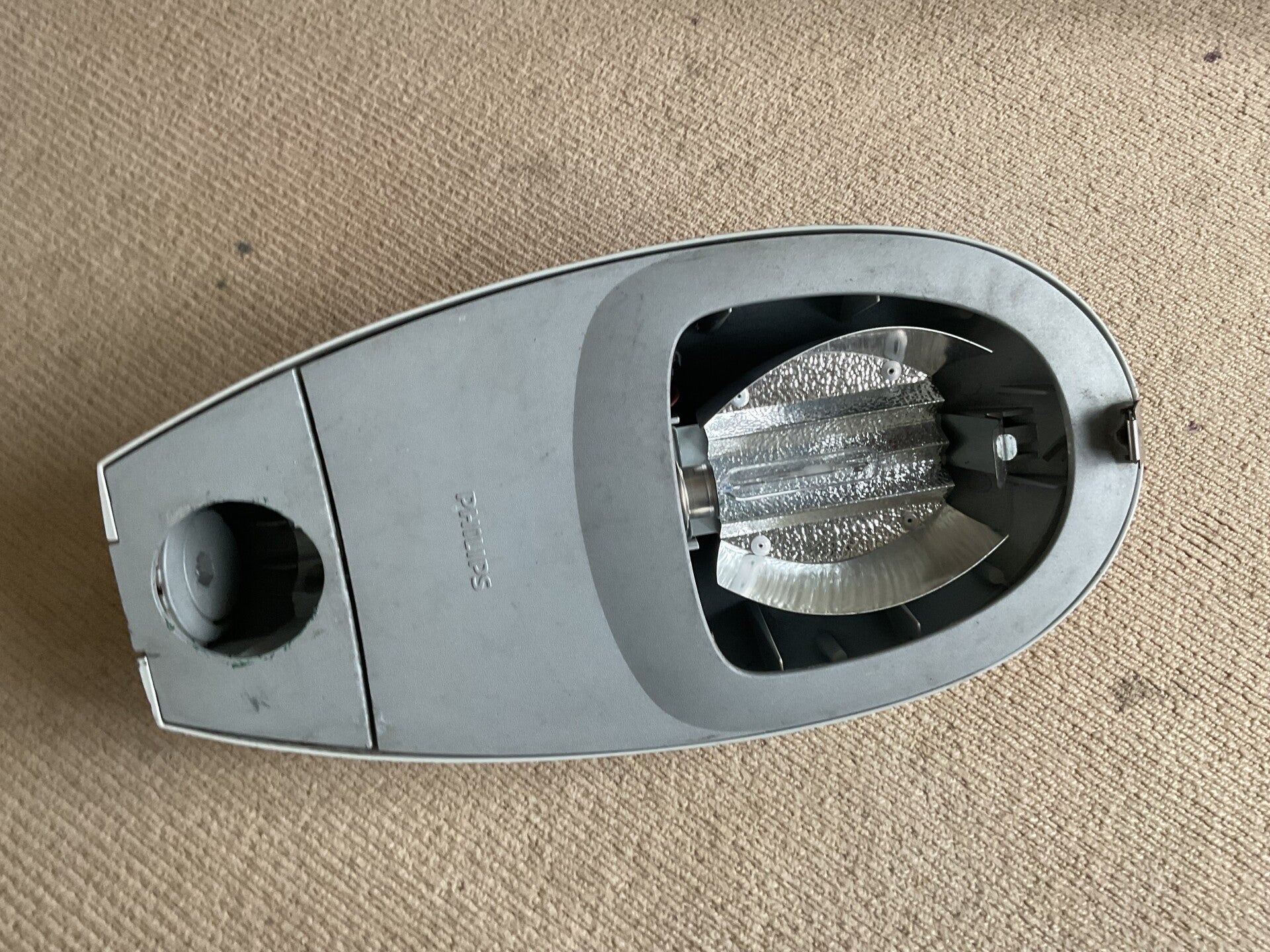 This is my Philips mini iridium. The Philips mini iridium is the smallest size of Philips iridium. My Philips iridium has no bowl, as the bowl exploded. I don’t know how it exploded, but the lamp didn’t break. It runs on a 45w cosmopolis lamp and has a Royce-Thompson microstar 2000 mini-cell.