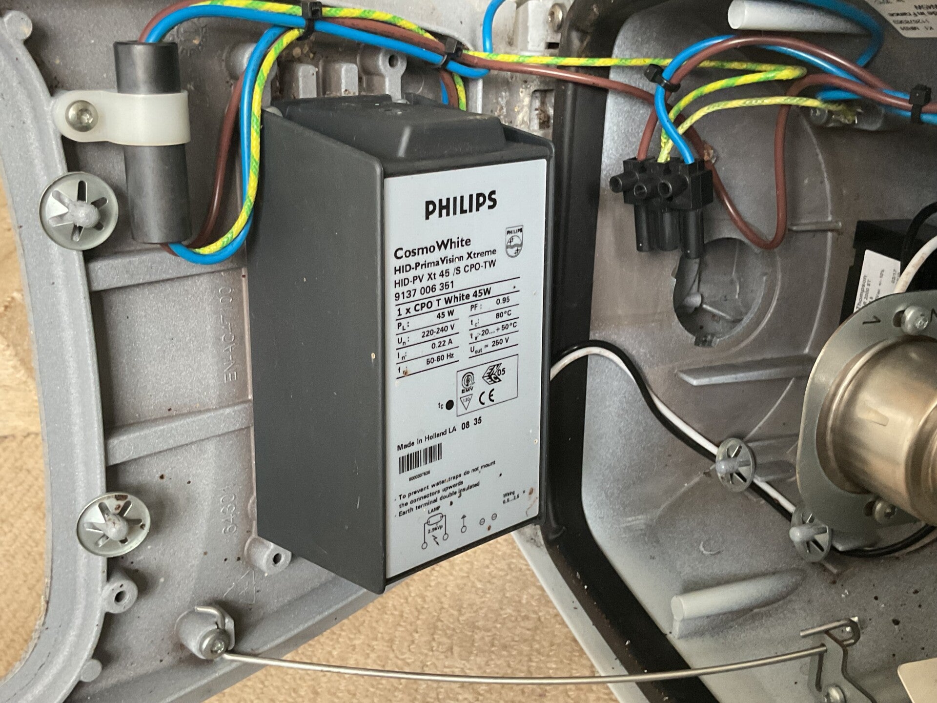 A close-up of the Philips 45w CPO-TW ballast