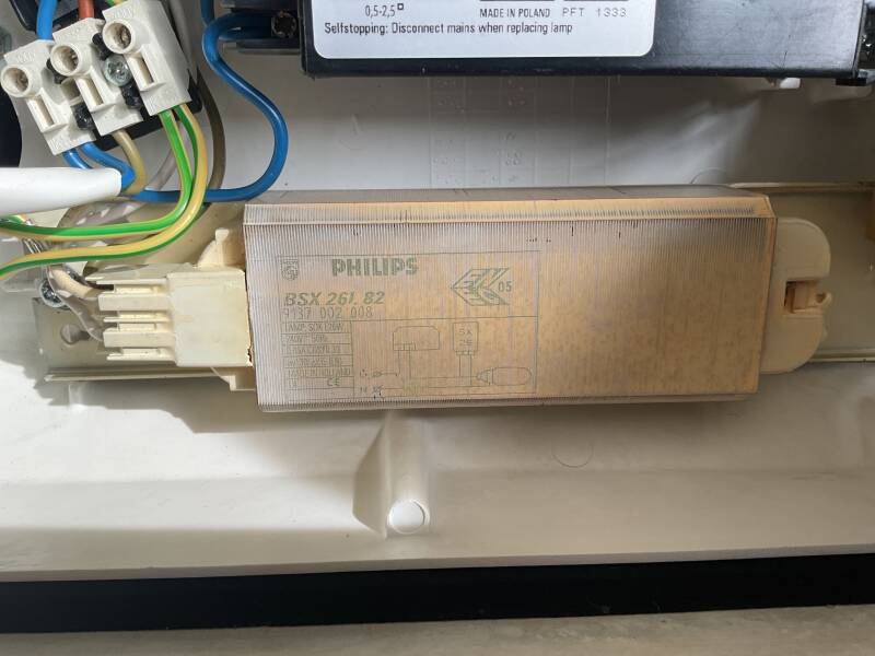 This is my Philips sgs103, it runs on a 35w Sox lamp, however it should be a 26w Sox-e lamp as the ballast says 26w Sox-e, however it works with a 35w Sox lamp. It runs on a Royce-Thompson Tristar 2000 NEMA photocell and Philips gear.
