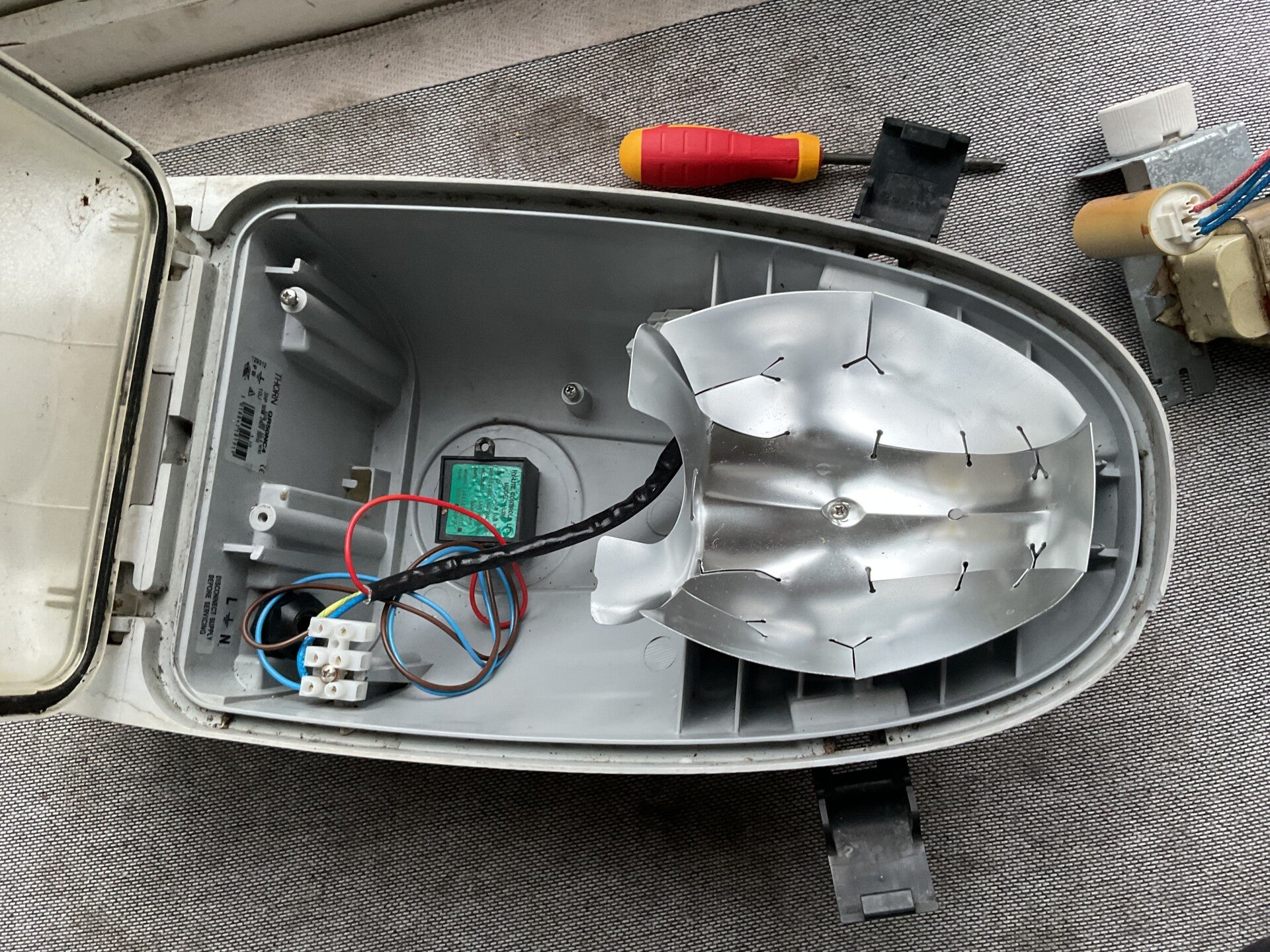 Here is the thorn Riga in my collection, it runs a 50w SON lamp and has Tridonic gear, it also has a hy-lite controls mini cell.