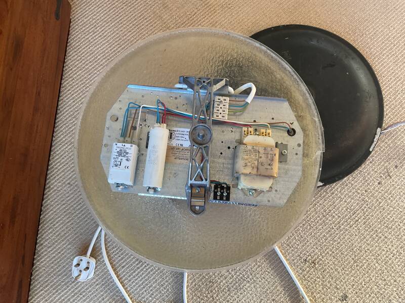 Here is the Tridonic ignitor and the capacitor.