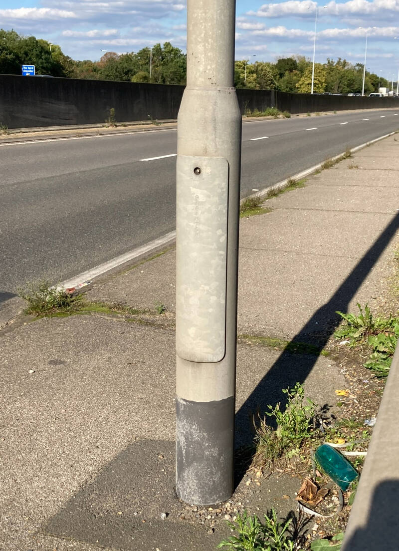 These urbis ZX3s are on the M25. They were installed in 1996 on the M25 widening scheme in 1996. Three of the ZX3s on this stretch of the M25 have actually combusted, but I don’t have many good photos of them. The fire in some of the ZX3s is most likely caused by the igniter continuing to try and ignite a failed lamp, and then it overheats and the igniter goes up in flames. It’s mostly a problem in lanterns with parmar gear.