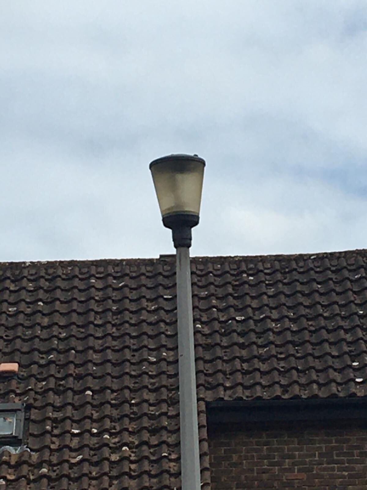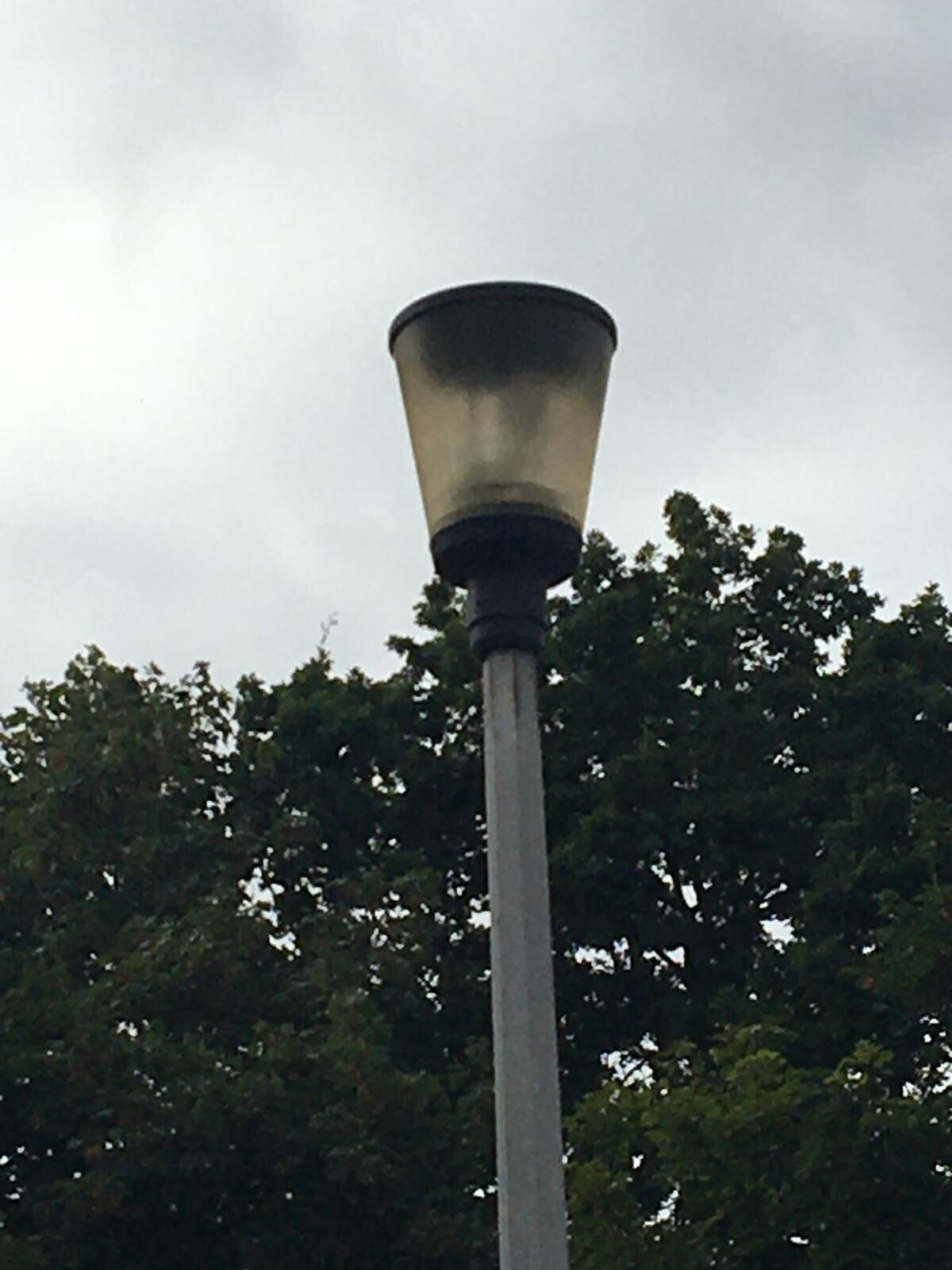 This vandalite Skye runs on a SON-E lamp and it has a yellowed bowl on it. This one is on a thorn column, probably replacing a failed thorn gamma 6 or a WRTL 2000.